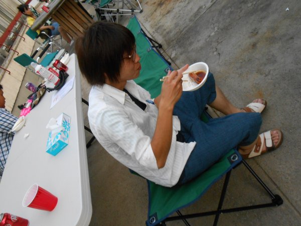 BJ マッケイ:「今回も沢山の熱いハートの持ち主達に集って頂きありがとうございました。」 ハニー:「大盛況だな。」 BJ:「私は西大寺町商店街入り口交差点で神風出張店をやってましたので、 ACE★SWATには顔を出すことが出来ませんでした。」 ハニー:「花火大会の日は、絶好のチャンスだからな。」 BJ:「10kgのサイコロステーキを売り切りましたよ。」 ハニー:「10kgかぁ。食べきれないなぁ。で、ACE★SWATはどうした?」 BJ:「他のスタッフに任せました。30数名が参加したみたいです。」 ハニー:「凄い人数だな!ありがたいことだ。」 BJ:「今回のイベントレポートは、写真をスタッフに任せているだけでなく、 私自身がACE★SWATにいなかったので、レポートしようがないんですよね。」 ハニー:「でも画像を見れば伝わってくるだろ。」 BJ:「とりあえず画像をサムネイルで見ましたが、今回は使える画像が少ないですよ。 暗いところは全てぶれてますので不採用です。」 ハニー:「写真係は、最適な人材がいただろ。」 BJ:「それはこのイベントが終わってから知りました。 とりあえず、やれるだけやってみます!」 ![]() BJ:「いきなり分かりませんけど?」 ハニー:「これは分からんなぁ。何をやりたいんだろうなぁ?」 ![]() BJ:「この辺の普通の写真は助かります。」 ハニー:「でもレポートしにくいな。」 ![]() BJ:「いつも通りの感じでBBQしてますが、私が焼いていないので少し違います。」 ハニー:「アメリカンBBQは、日本のBBQとはちょっと違うからなぁ。」 BJ:「アメリカンBBQはパーフェクトを目指してお父さんのプライドを賭けて準備してますからね。 肉を焼けば良いと思ってるだけの日本のBBQとは背負ってる物が違うんですよ。」 ![]() BJ:「今回は、肉の焼き方に関してはまあまあ任せられる人員を配置してました。」 ハニー:「KAI君か。」 ![]() BJ:「今回はACE★SWAT作製時にお世話になったはまちゃんも参加してます。」 ハニー:「玉野の人はいい人達ばかりだな。」 ![]() BJ:「国さんずっとこの格好で食べてたのかな?」 ハニー:「スタイル崩さないなぁ。」 ![]() BJ:「この方もスタイル崩さないですよね。」 ハニー:「お前と一緒である意味崩れてるけど崩さないな。」 ![]() BJ:「フィールド内の写真が、ほとんど全滅でしたね。 これが唯一まともでしたね。」 ハニー:「カメラモードを切り替えてなかったんだろ。」 ![]() BJ:「外ではきちんと写ってるんですけどね。 スタッフがつまみ食いしてる所とかが。」 ハニー:「ああ、あの問題児か。」 ![]() BJ:「お客さんがつまみ食いしようとしてるところは写ってないですが、 TAKAさんはこの後西大寺町入り口交差点の方で売り子をしてくれました。」 ハニー:「そこは写してないんだな。」 BJ:「そこは写してはいけない所です。」 ハニー:「お客さんのつまみ食いは写せんわな。ACE★SWAT作製時にめっちゃお世話になってるしな。」 BJ:「つまみ食いはしてませんよ。しようとしてたかどうかは別として。 変なこと言ってたら家庭内で内線が勃発しますからね。」 ハニー:「それはやばいな。」 ![]() BJ:「鉄砲安さんのように歳を重ねても仲良く出来る家庭を持たないといけませんからね。」 ハニー:「ご夫婦で参加してくれたのか。」 BJ:「ご夫婦かどうかは存じませんけどね。」 ![]() ハニー:「これは?何?夫婦円満の秘訣?」 BJ:「いや、別に上の写真と続いてるわけではありません。 たまたまそうなっただけで意図はございません。」 ハニー:「何か怪しい方向に誘導してない?」 BJ:「怪しいも何もその場にいなかったからどのように写真を並べるかも全然分かりませんから! その辺はどうしようもないですから。 とりあえず、黙って見てなさい。」 ![]() ハニー:「黙って見てたらレポートにならねぇよ。いいのか?」 BJ:「まあたまにはそんなときもあって良いんじゃないでしょうか? イベント続きでレポートは難しいですよ。」 ハニー:「意外と何も言わない方が見る人の想像を掻き立てることもあるからな。 ちょっとの間黙っとこうか。」 BJ:「それがいいですね。」 ![]() ハニー:「おっ!理大附属組の後ろからブルーサンダーが浮上してきたら格好いいよな。」 BJ:「黙ってるんじゃなかったんですか?」 ![]() ハニー:「建部組だ。」 BJ:「黙ってるんじゃなかったんですか?」 ![]() ハニー:「これは?」 BJ:「黙ってなさい!」 ハニー:「はい。」 ![]() ハニー:「・・・。」 ![]() ハニー:「これは黙ってられない。寂しいぞ!寂しすぎるぞっ!」 BJ:「なんかひとりぼっち感ハンパ無いですね。」 ハニー:「ぱねぇよ!かわいそうな子だ!多分親に見捨てられたんだろうな!」 BJ:「親御さんは神風で手伝ってもらってたようですから、我々のせいでもありますけどね・・・。」 ハニー:「ま、一人でも不都合ねぇよな。」 ![]() ハニー:「良い感じで写ってるな。」 BJ:「適当に言ってませんか?」 ハニー:「たまにはそんな時もあるさ。」 ![]() ハニー:「はまちゃんモテモテだな。」 BJ:「そこは突っ込まないといけないですよね。」 ハ