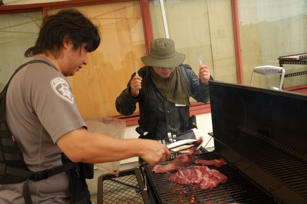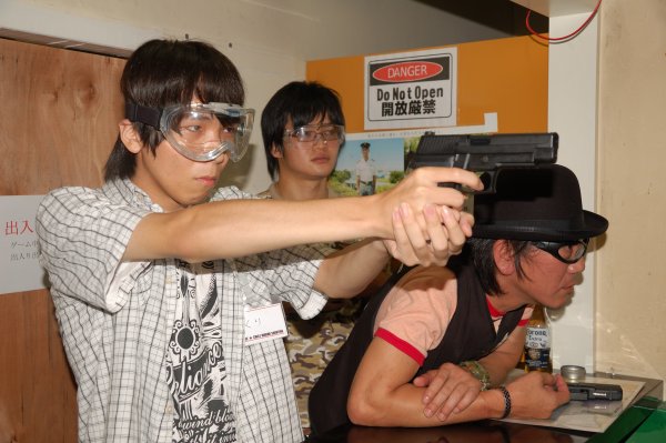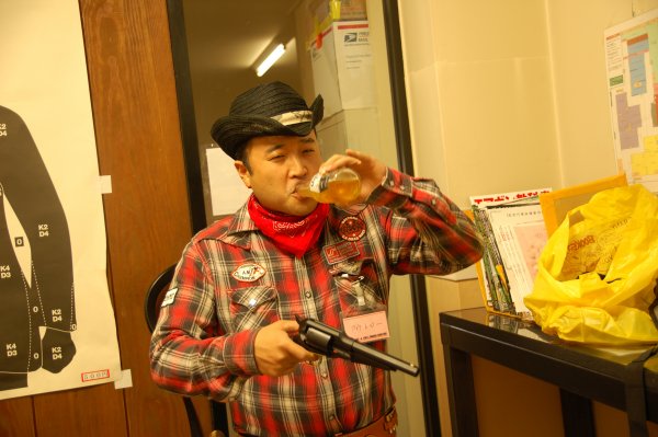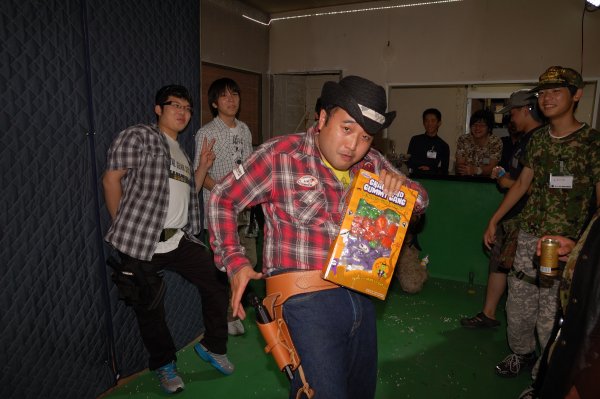 BJ マッケイ:「今回のBBQシューティングには、もう肉が食いたくて食いたくてしょうがない方達に参加して頂きました。」 ハニー:「お前が焼く肉はでかいからなぁ・・・。」 ![]() ハニー:「誰これ?」 BJ:「ベヘモスさんです。」 ハニー:「それは名札見れば分かるけど・・・。中身誰?」 BJ:「中身はWYVERNです。」 ハニー:「ああ、あの不審者か。」 ![]() ハニー:「この不審者はよく知ってるぞ。」 BJ:「首に巻いたタオルが全てを台無しにしてますよね。」 ![]() ハニー:「で、この西部劇から出てきたような不審者は?」 BJ:「みんなよく知っている通称カウボーイの人です。」 ハニー:「似合ってるなぁ。」 ![]() BJ:「フライドポテト参上です。」 ハニー:「なんで時風はフライドポテト持って口を尖らせてるんだ?」 BJ:「ベヘモスさんからそのままトレーを持ってろって言われたんでしょうね。」 ハニー:「ベヘモスは、顔射し禁止か?」 BJ:「そのようですね。禁止の方は、カメラ向けられたら顔を隠して下さいね。 基本的にはいちいち掲載許可を取りませんので。 隠して欲しい方は後からでも言って来て頂ければ下の写真のように隠します。」 ![]() BJ:「バッチリ隠します。」 ハニー:「バッ尻ってどんな尻なんだ?」 BJ:「勝手に脳内変換しないように。」 ![]() ハニー:「西部劇みたいだな。」 BJ:「西部劇でよく見かける光景ですね。」 ハニー:「この後、悪者が入ってきて撃ち合いになるんだな。」 ![]() ハニー:「おっ、悪者のバッドアス・アナルチョボビッチの登場だ。」 BJ:「誰ですかそれ・・・。」 ハニー:「バーテンダー役は、トテモウォッチ・ツッキナイーノだ。」 BJ:「あれ?カウンターの向こうにもう1人いますよ。」 ![]() ハニー:「奴は、フライドポテト・A・ソッコウタイラゲーノだ。」 BJ:「彼があっという間にフライドポテトを平らげた犯人ですか!」 ハニー:「ミドルネームは、アンナニタックサンアッタノーニだ。」 ![]() BJ:「しょうもない西部劇をやってる最中ですが、ネオシューティングレンジでは皆さん黙々と練習をしております。」 ハニー:「目が怖い。」 BJ:「お前は鳥か!」 ![]() BJ:「しょうもない西部劇をやり、ネオシューティングレンジでは皆さん黙々と練習をしている最中ですが、 屋上へ上がる階段では猫の大佐と戯れる方が。」 ハニー:「大佐は、人懐っこいからなぁ。」 ![]() BJ:「しっかりと相手してもらって大満足のようです。」 ハニー:「どっちが相手してもらってるんだか。」 ![]() BJ:「そんな混沌とした建物内での出来事とは全く関係なく、順調に焼かれる肉です。」 ハニー:「Dr.Pepperが眩しい。」 BJ:「ドクペの消費は、県内最高(当施設独自妄想)を誇ってます。 ![]() BJ:「肉が焼けるのを待ちきれない様子のベヘモスさんです。」 ハニー:「無類の肉好きだからなぁ。」 ![]() BJ:「そして肉が焼けるやいなや、小雨の降る中テラスで肉を食べるベヘモスさんです。」 ハニー:「なんで建物内で食べないんだ?」 BJ:「何故か外で食べてます。」 ![]() BJ:「うちの食いしん坊スタッフのチャバネゴキブリも加わり、テラス上までカオスな世界になってます。」 ハニー:「もはや異次元だな。」 BJ:「チャバネ君は二次元好きですよ。」 ハニー:「それは、好きなんではなくて二次元でしか相手にしてもらえないんだろ。」 ![]() BJ:「彼は結構やる男で、ナイフとフォークを自作持参してきました。」 ハニー:「チャバネ自作乙☆と言ったところか。」 ![]() BJ:「先ほどまで西部劇が行われていた旧シューティングレンジでは、 みんな行儀よく座って食事中です。」 ハニー:「低級レストランって感じだな。」 ![]() BJ:「低級とは失礼な。ま、高級とまでは言えないですけど、せめて低俗にして下さい。」 ハニー:「そっちの方がレベル低くないか?」 ![]() BJ:「シューティングに挑戦中です。」 ハニー:「1人マイペースで楽しんでる人がいるな。」 ![]() BJ:「またこんな物を使ってますが、このイベント終了後に廃棄しました。」 ハニー:「もっくんのお手製なのに捨てちゃったのか?!」 BJ:「邪魔なので捨てました。」 ハニー:「サヨナラSWAT!!」 ![]() ハニー:「サヨナラ喪っくん!!」 BJ:「・・・・もっくんは捨ててないですけどね。」 ![]() ハニー:「どこ狙ってるんだ?」 ![]() ハニー:「みんなここは真剣だな。」 ![]() BJ:「トテモウォッチ・ツッキナイーノ改めイーグル・アイです。」 ハニー:「何?手羽先って意味?」 BJ:「いや、随分違いますが・・・。それ、見た目で言ってません?」 ![]() ハニー:「狙えるのか?」 BJ:「大丈夫。心の眼で見てますよ。」 ハニー:「アフガンってやつだな。」 BJ:「心眼です。」 ![]() ハニー:「おっ!真剣だな。」 BJ:「そりゃあ素敵な景品がかかってますからね。」 ![]() ハニー:「すぎちゃんは芸をやらないのか?そんなの関係ねぇって。」 BJ:「小島混ざってますよ。」 ![]() ハニー:「くり?」 BJ:「くりって読めますね。」 ハニー:「何故くり?」 BJ:「次回本人に聞いて下さい。」 ![]() ハニー:「くり鍋?」 BJ:「続けて