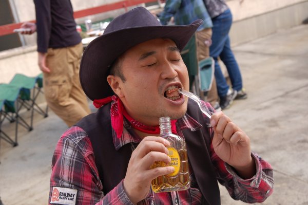 BJ マッケイ:「ハロウィンBBQの時だけ現れる、悪魔の使い・・・」 ハニー:「いきなり何だ?!」 ![]() BJ マッケイ:「それが・・・」 ハニー:「それが?!」 ![]() BJ マッケイ:「かぼちゃ男爵だっ!」 ハニー:「なにっ?」 ![]() BJ マッケイ:「かぼちゃ男爵はとっても肉が好き!」 ハニー:「それは知ってる。」 BJ マッケイ:「そしてこの人も肉が好き!」 ![]() ![]() ![]() ハニー:「いや、最後は酒が好きになってますけど!」 BJ マッケイ:「ニクモスキーダ・ケドサケモスキー!」 ハニー:「毎回名前変えてるけど、K重さんだろ。岡南模型的に言えば。」 BJ:「今回のシューティングは、ハロウィンバトルシューティング!」 ハニー:「なんだ?唐突だな。」 ![]() BJ:「2人の死に神を狙って弾が当たれば、片方の死に神はあめ玉を落とします。 そしてもう片方の死に神は電動フルオートで撃ち返してきます。」 ハニー:「えげつないな・・・。こりゃどっちがどっちか分からんぞ。」 BJ:「あめ玉を落とす方の死に神を撃たなければいけません。 死に神が撃ち返してきた弾に当たればヒットアウトです。 もちろん参加者同士撃ち合って当たってもヒットアウトです。 何ゲームか戦って拾い集めたあめ玉の数を競います。」 ハニー:「あめ玉かぁ。」 BJ:「そうです。下の写真に写っているあめ玉です。」 ![]() ![]() BJ:「それをこのように拾い集めます。」 ハニー:「難しそうだなぁ。」 BJ:「難しいですよ。誰でも良いから撃ちたい人もいますし。」 ハニー:「奴か!」 ![]() BJ:「その奴です。ただいまシステム再起動中です。」 ハニー:「扱いが、もはや人間じゃ無くなってるな。」 BJ:「随分前に人間辞めてますからね。」 ![]() BJ:「死に神に近づいていって何をするのかと思えば・・・。」 ハニー:「何したんだ?」 ![]() BJ:「ディープキスです。」 ハニー:「おいおい!」 BJ:「「死に神にディープキス」って題名で恋愛小説でも作るつもりなんですかね。」 ハニー:「ホラー小説じゃねえのか?」 BJ:「いやいや、彼は案外ナイーブなんですよ。」 ハニー:「ナイーブとは純粋に傷つきやすい様だろ。奴は純粋に(人を撃って)傷つける方だろ。」 BJ:「まあ純粋だから良いんじゃないですか?」 ハニー:「良くねぇよっ!そんな純粋さは要らねぇよっ!」 ![]() BJ:「今回はハロウィンということで、 参加者には、ポリス・ミリタリー以外のコスプレをしてもらいました。 当然のことながらスタッフもコスプレしてます。」 ハニー:「D輔は、半分だけ顔射し禁止?」 ![]() ハニー:「トナカイ!?」 BJ:「クリスマスも近いですしねぇ。良いコスプレです。」 ハニー:「コスプレに良い悪いがあるのか?」 BJ:「まあ、青少年が集まるのでね。適切かどうかと言うのはありますよね。」 ![]() BJ:「このように普段SMクラブでやっているような格好をされると、 青少年への教育上の問題が指摘されますよね。」 ハニー:「なるほど。素性が知れると困る社会的地位のある人達がよく行くらしいからなぁ。」 BJ:「そうですね。私みたいに素顔でいる人は少ないですよ。」 ハニー:「・・・よく行ってるの?」 BJ:「冗談です。」 ハニー:「お前の冗談は分からんなぁ・・・。で、写真の彼はよく行ってるの?」 BJ:「よく見かけますよ。ACE★SWATの常連とは思いもしませんでした。」 ハニー:「やっぱよく行ってんじゃんっ!」 ![]() BJ:「このような格好が本来適切なんですが・・・」 ハニー:「いつもこの格好じゃんっ!」 BJ:「そうなんですよね。思いっきり手抜きです。 せっかくのハロウィンBBQなんですから、トナカイ君みたいにもっと気合い入れないと。」 ハニー:「そうだよな。」 BJ:「その点、下の写真の彼は気合いだけは入りまくりでしたね。」 ![]() ハニー「イーグル・アイっ!!」 BJ:「すみません。写真間違えました。手羽先君のコスプレ写真ではありませんでした。」 ハニー:「なんだ、驚いた。こんなに完璧なコスプレをしてきたのかと思ったわ。」 BJ:「さすがにこれがコスプレだと、どんだけリアル思考なん?って感じですね。」 ハニー:「そうだよな。」 BJ:「これは、ハロウィンBBQの伏兵のターキーレンジャーですね。」 ハニー:「ちょっと古いな。4、5年前だな。ゴールデンエッグス。」 BJ:「古かったですか。はい、本題に戻ります。 まあ、いつも肉ばかりなのでたまには野菜も良いだろうと思い、 七面鳥の丸焼きを作ってみました。」 ハニー:「鳥は野菜か。」 BJ:「その辺に生えてますからね。」 ![]() BJ:「こちらがイーグル・アイ君です。ベールで隠してるけど、素顔が透けて見えてますね。」 ハニー:「奴の顔色こんなにゴージャスだったっけ?」 ![]() BJ:「ゴージャスと言えば、このスタッフ。」 ハニー:「なんか頭だけが無駄にゴージャスだな。何の格好?」 BJ:「これはギネスレコード更新したときの格好らしいですよ。」 ハニー:「なんのギネスレコード?」 BJ:「何本入るかでしょう。」 ハニー:「その手は、とりあえずソーセージ6本入れろって言ってるのか?」 BJ:「今日は6本入れて来たってことじゃ