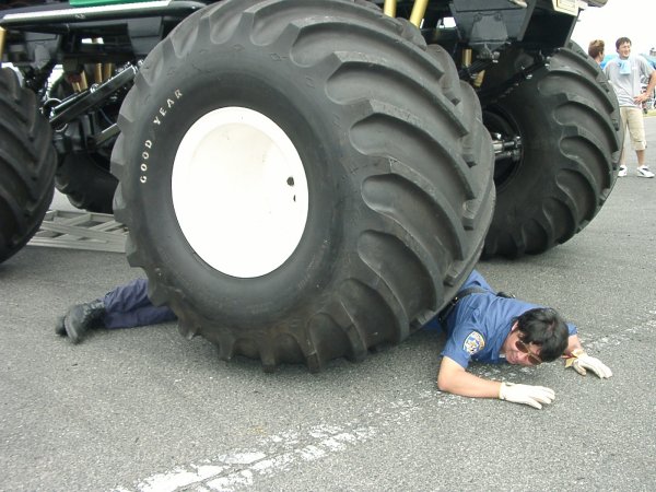 EQUA: 「出た。モンスタートラック。タイヤ一つで500kgもあるんだって。」