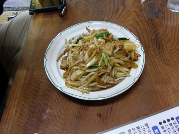 BJ:「昼食は、落合の太閤というお店です。ホルモン焼きそばを探してたどり着きました。」