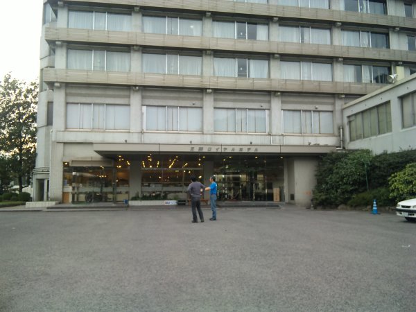 BJ:「三朝ロイヤルホテルの駐車場にて。」